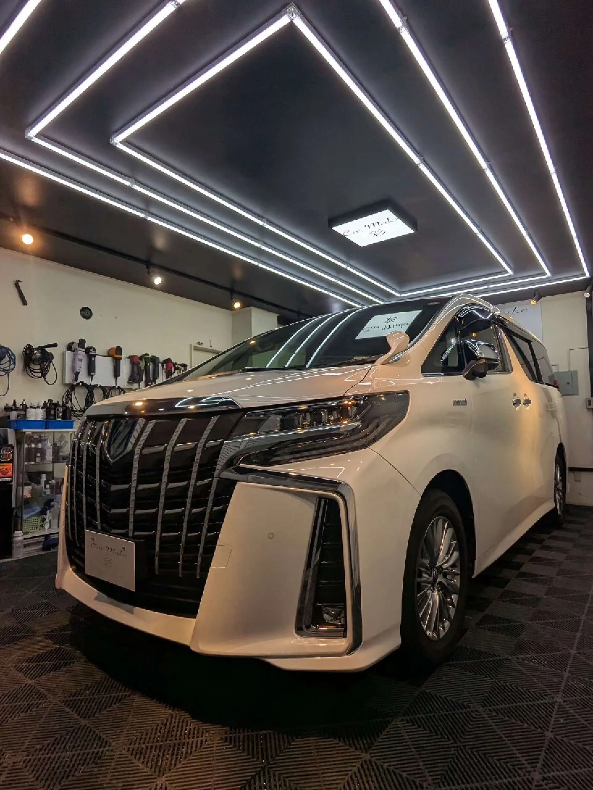 当店では、アルファードのセラミックコーティング、ボディー研磨、ガラス撥水加工、細部洗浄までトータルで対応。