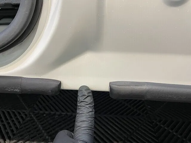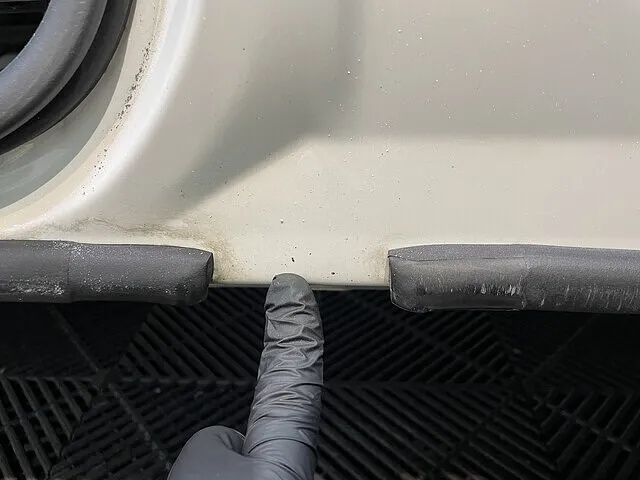 ドア内、ステップ周りに固着した水垢、黒ずみ汚れを徹底洗浄
