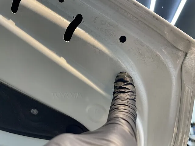 ボンネット裏に固着した水垢を徹底洗浄